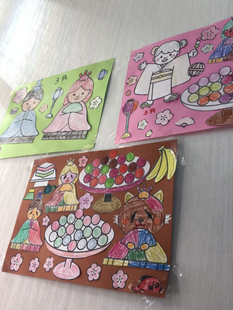 写真は利用者さんに制作してもらった3月の飾り付けです。とてもカラフルな色付けでかわゆいですはい🫣