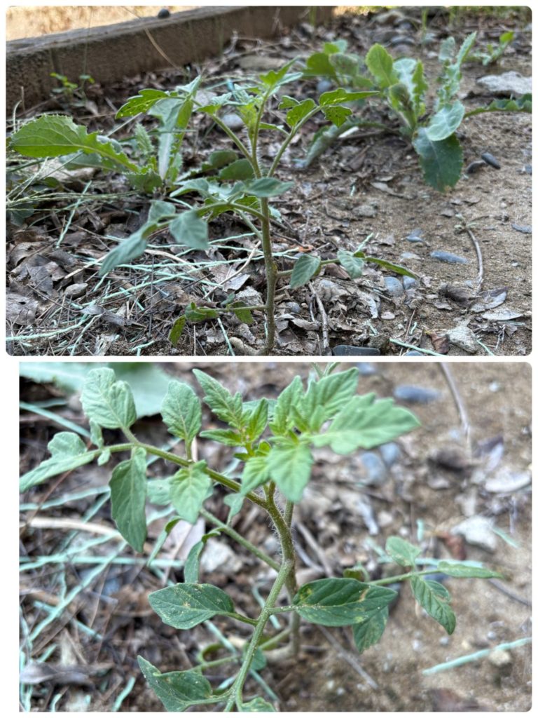 エンデバーに敷地に、裏の方です!トマトの苗が生えていました。