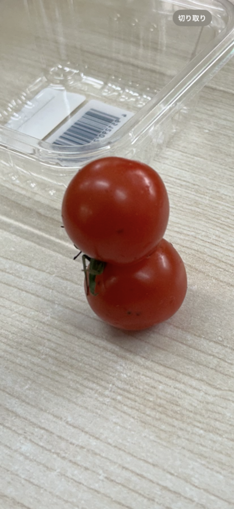 チクリと痛い指摘を受けまして今回はSさんとネタ探して一緒に書こう!と誘いました。この季節にピッタリの、雪だるま⛄️の形をしたミニトマトを発見💡